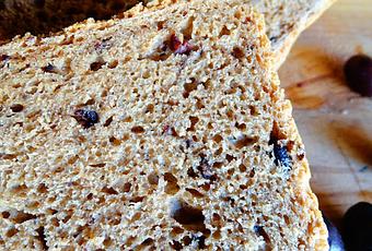 Antes del segundo levado, la máquina suele avisar con un pitido, es entonces cuando añadiremos las aceitunas negras picadas y un poquito de tomillo.