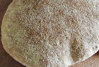 Hacemos una montañita de sémola fina, dividimos la masa en 2 partes, hacemos una bola con cada una de ellas y las pasamos por la sémola hasta que queden totalmente recubiertas. Las aplastamos un poco y las dejamos reposar durante 30 minutos, tapadas con un paño y en un lugar donde no haya corrientes de aire (yo a veces enciendo el horno a 50ºC y los meto dentro, luego subo a 180ºC y horneo hasta que están dorados).