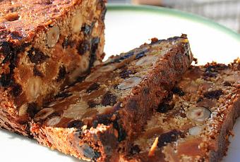 Espero que os guste a vosotros!aqui los ingredientes;3 huevos125g azúcar125g copos de avena6g levadura de reposteria (1 cucharadita pequeña)2-3 gotas de aroma de ron (lo hay de Dr. Oetker)125g ciruelas deshidratadas125g albaricoques deshidratados125g avellanas250g pasas60g almendrasBatimos los huevos con el azúcar hasta que tengamos una masa espumosa y añadimos los copos de avena, el aroma de ron y la levadura. Luego echamos tambien todos los otros ingredientes y vertimos la masa en un molde rectangulo (si no es de silicona como el que usaba yo, hay que engrasarlo bien).