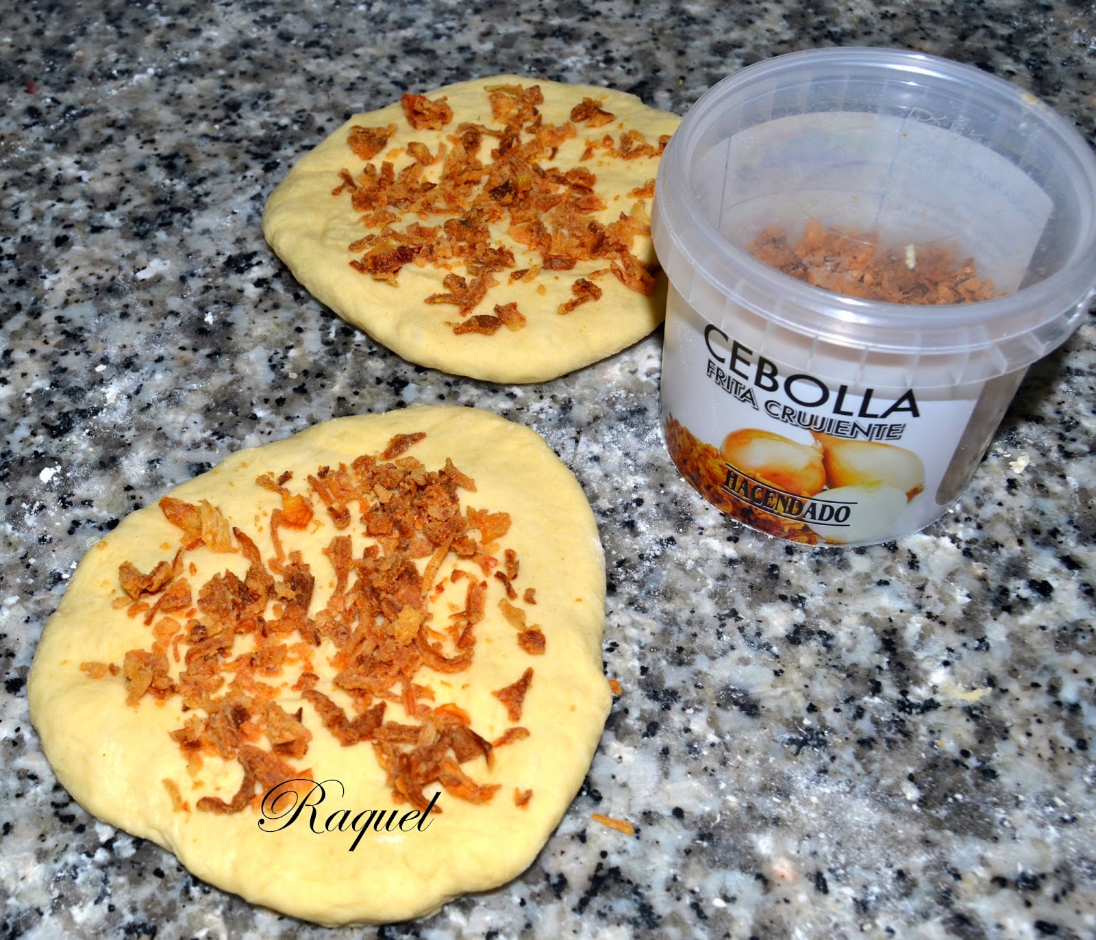 Hoy toca hacer pan para las hamburguesas de la cena, pero hoy le voy a dar un toque diferente, ya sabéis que me gusta inventar y la verdad no ha quedado nada mal todo lo contrario, esta muy rico y diferente.Le he puesto cebolla crujiente de la que venden en los supermercados, tenia ganas de probarla y ahora busco en que gastarla y se me ha ocurrido esto.