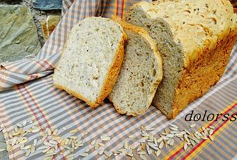 Ingredientes para un pan de unos 900 gr.300 de leche2 huevos2 c/s de aceite1 c/p rasa de sal540 gr. de harina5 c/s de pipas de girasol peladas crudasUn pellizco de sésamo negro 1 pizca de azúcar1 paquete de levadura seca de panadería. Sacar la cubeta de la máquina y poner los ingredientes por este orden:Leche, los huevos batidos ligeramente, el aceite y la sal.