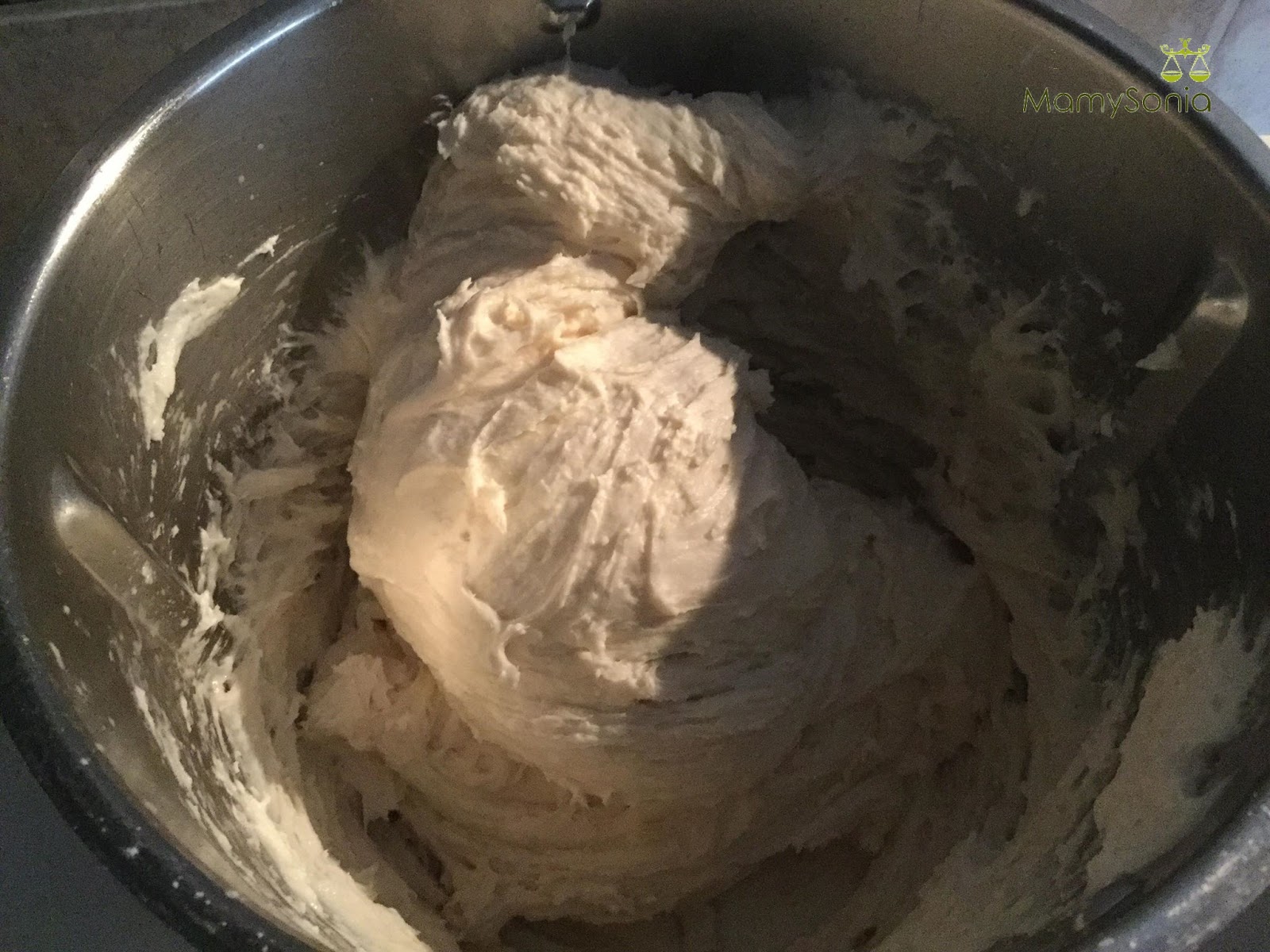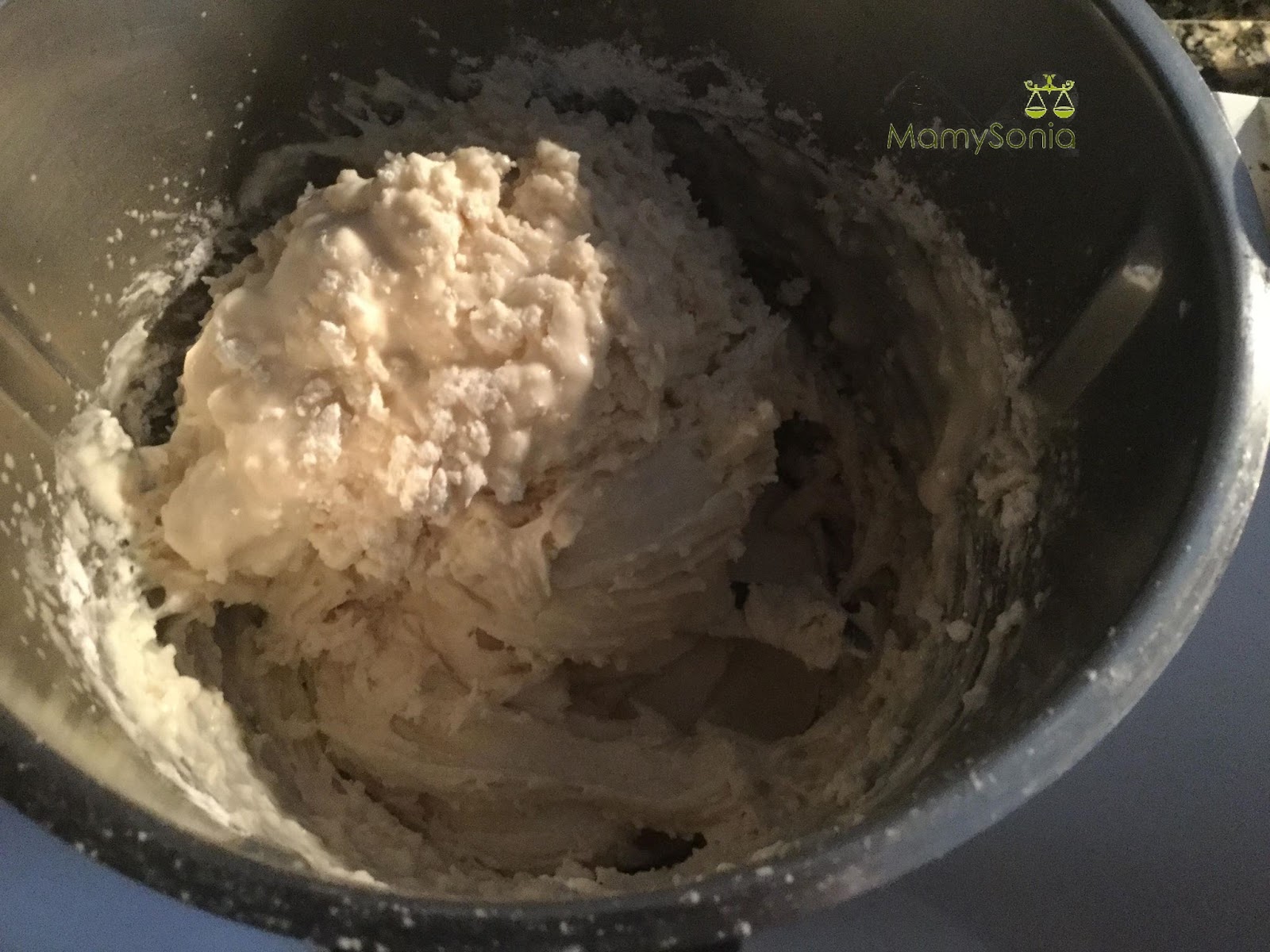 Incorporamos la harina y la sal, mezclamos 30 Seg, Vel 6.