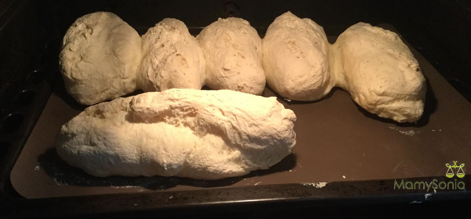 Una vez levado con las manos mojadas damos la forma deseada, yo una vez lo he puesto en un molde y otra vez le he dado forma de bollos