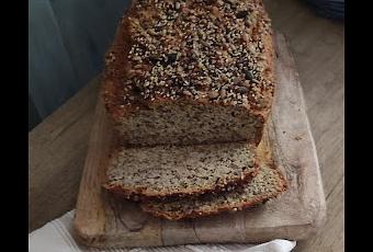 INGREDIENTES: 16 Porciones 1 taza harina de coco (110g) 2/3 taza linaza molida (74g) 1/4 taza semillas de calabaza (28g) 1/4 taza semillas de girasol (28g) 1/4 taza semillas de chia (28g) 1/4 taza semillas de sésamo (28g) 1/4 taza semillas de cáñamo (28g) 1.5 tbsp polvo de hornear (18g) (180g) temperatura ambiente Precalentar el horno a 160ºC.
