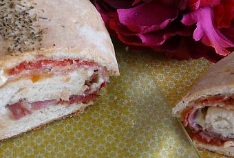 Rellenar con las lonchas de embutido, por último cortar el tomate en rodajas finas y colocar sobre las lochas de jamón, espolvorear un poco de orégano y cerrar, los laterales hacía dentro y luego enrollar.