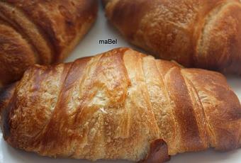 Este es un pan hojaldrado, conocido en Argentina como torpedo. Con esta misma masa se hacen las medialunas de grasa ( VER AQUI EL ARMADO), o los sacramentos, que son como los de la foto pero pequeños, o bien se pueden enrollar con jamón y queso y hornearlos para que queden rellenos