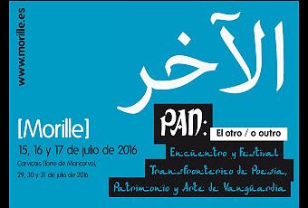 Siempre han mirado a Portugal Morille y su PAN: Encuentro y Festival Transfronterizo de Poesía, Patrimonio y Arte de Vanguardia Desde hoy hasta este domingo se celebra su decimocuarta edición, dedicada a «El otro/O outro», con un pie también puesto en el país vecino, en donde el fin de semana próximo se repetirá en la freguesía de Carviçais (Torre de Moncorvo). Organizado por el Ayuntamiento de Morille y dirigido por su alcalde, Manuel Ambrosio Sánchez, viene estructurándose en secciones con debates, lecturas poéticas, exposiciones, acciones, talleres o conciertos que propician el encuentro entre artistas, poetas, músicos, docentes en un medio natural y rural. Puede verse el programa completo aquí.