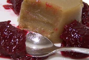 La receta original lleva una salsa de frambuesas para acompañar a la panna cotta. En mi caso la he acompañado con un poco de mermelada de frambuesa ya que no tenía frambuesas fresas en casa.