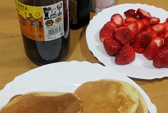 Pues con esos mismos ingredientes las acompañé yo "Tortitas con nata, fresas y sirope de caramelo" mmmm delicioso. Tanto para una merienda, cena o desayuno, cuando mas se os apetezcan se pueden comer.