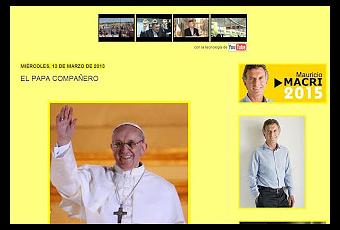 La multitudinaria organización Solano Lima, de la juventud pro-saica mauritondista, se viste de gala y de puro regodeo implora besarle el anillo al nuevo papa "compañero" Don "austero" Pancho Bergoglio, por una doble identificación: los colores del vaticano son los colores del Pro y además encuentran en el nuevo Papa al nuevo representante de la oposición. Queriendo reeditar un "Braden o Peron", en este caso la consigna propulsora sería "Francisco o Kirchner" (sabiendo quiénes serán los que estarán en cada una de las trincheras). Más allá del ataque de urticaria de muchos de los compañeros y teniendo la teoría conspirativa a flor de piel, considero un tanto exagerado la idea de que haya sido designado Bergoglio con la finalidad de acabar con los gobiernos populares de la región, equiparandola con la accion militante de Juan Pablo II contra el comunismo (el gran sueño de Pagni y de muchos opositores).La Solano Lima nos dice:El kirchnerismo siempre apostó a la destrucción de la imagen pastoral y moral del cardenal Jorge Mario Bergoglio. Fue Néstor Kirchner quien lo tildó de ser el principal dirigente de la oposición porque el purpurado advertía acerca de los peligros que podían producir en la comunidad nacional la prédica disolvente, el avance de la corrupción y el ataque a las valores republicanos durante los primeros años del populismo oligárquico, que ha desembocado en el actual régimen prostituyente liderado por Cristina Fernández. Kirchner para ensuciar a Bergoglio instó al ministro sin cartera Horacio Verbitsky a escribir libros difamatorios como así tambien innumerables libelos injuriosos en el diario Página/12. Y como si fuera poco para consumar su venganza del Cardenal Primado, en el Congreso de la Naciónimpulsó la ley de matrimonio igualitario montando una descomunal campaña sucia contra la Iglesia, a la que se asoció incesantemente con la última dictadura cívico-militar. Los camporitas quedaban afónicos cantando “Iglesia basura/ vos sos la dictadura”.