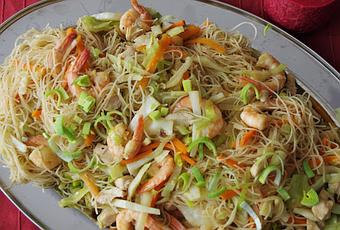 Este mes quería decantarme por algo fácil y rápido ya que no andaba muy bien de tiempo así que me decidí por un plato que seguro que en casa iba a gustar mucho ya que se parece bastante a algunos de la cocina indonesia que solemos preparar. En este caso he elegido el pancit o pansit, a base de fideos de arroz, introducidos inicialmente en la cocina filipina por los colonos filipinos chinos en el archipiélago y adoptados con el paso de los siglos en la cocina local. Este plato está tan extendido en la gastronomía filipina que existen establecimientos de comida especializada en fideos llamados panciterias.