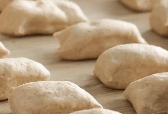 Tomar cada trozo de masa y bollarlo haciendo presión y formando círculos con la mano.