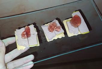 - Galletas Pancrek de La Mole. Me gustan estas galletas para este pincho ya que tienen el tamaño perfecto para el bocado pero son resistentes y aguantan bien el peso del foie y el maridaje.