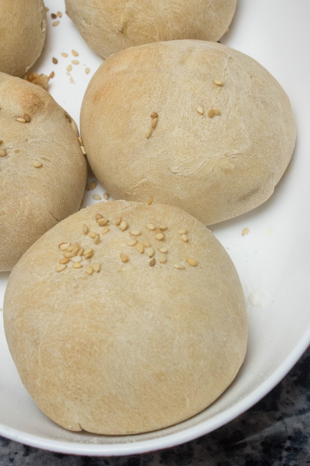 Luego añadir el sésamo en el centro y cortar en cruz un poco por arriba los panecillos.