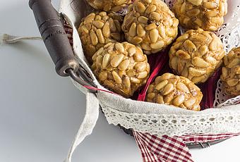 125 g de almendra molida 125 g de azúcar 60 g de agua 150 g de piñones 2 yemas de huevo 1 huevo entero
