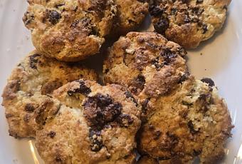 En otro bol, tamiza la harina, la levadura, el bicarbonato. Añade los ingredientes secos a la mantequilla junto con las pepitas de chocolate y remueve hasta apenas mezclarlo todo.