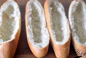 Cortamos las tapas de las baguettes mini con ayuda de un cuchillo de sierra, vaciamos ligeramente la miga del interior, añadimos la trucha ahumada troceada y añadimos la panceta cortada en tiras, sobre esta ponemos el queso Gouda, incorporamos la mitad del perejil y sobre este el queso parmesano. Horneamos a 200ºC durante 5 minutos aproximadamente o hasta que estén doraditos. Retiramos y espolvoreamos con el perejil restante.