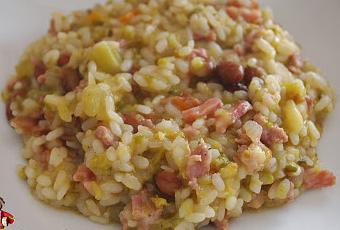 La receta de hoy, como habéis podido deducir de la preparación, es un tipo de arroz caldoso o risotto que se sirve como plato único (más que nada por su contundencia) y es típico de la región del Piemonte/Val d'Aosta, que es por donde comenzamos nuestra aventura culinaria italiana.