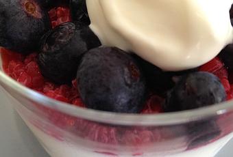 – Antes de presentar picar unas frambuesas en una tabla y poner una buena cucharada en cada vasito y un puñadito de arándanos para terminar. También podéis añadir una cucharadita de creme fraiche encima.