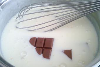 Preparación: Poner las hojas de gelatina a hidratar en agua fría; podemos dejarlas en la nevera. En un cazo al fuego poner la nata con el azúcar y dejar que hierva. Cuando esté hirviendo mantener un hervor suave durante unos 3 minutos. Retirar el fuego y fundir en la nata la cobertura elegida. Calentar la leche y en ella diluir las hojas de gelatina ya hidratadas y perfectamente escurridas. Unir las dos preparaciones y verter la panna cotta en recipientes individuales o en un recipiente grande, eso según se desee y según cómo se prefiera presentar. Dejar en la nevera al menos 4 ó 5 horas o de un día para otro.