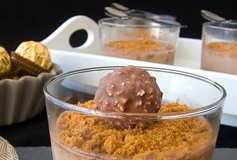 Esta de escándalo, se notan los trocitos de avellana del bombón y la galleta.Y el toque de las galletas es increíble. Yo las he puesto en el fondo del vaso y por encima. Os diré que cuando pongáis la panna cotta, las galletas se van a mezclar un poco, pero que no os importe porque le va a las mil maravillas.