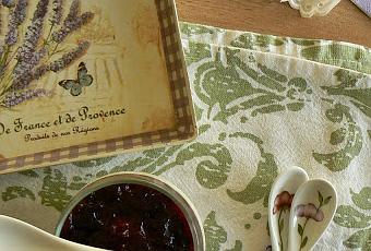 En las versiones tradicionales se suele acompañar por coulis o salsas de frutas (frutillas, frambuesas...) que aportan un toque ácido como contrapunto de la cremosidad de la preparación. Las recetas más modernas también combinan el sabor clásico con salsas de chocolate o dulce de leche. Sin embargo, al sabor que le imprime la lavanda, lo acompañan muy bien los contrapuntos ligeramente ácidos de las mermeladas de arándanos o de limón.