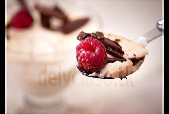 Decoramos con unas virutas de chocolate y unas grosellas.