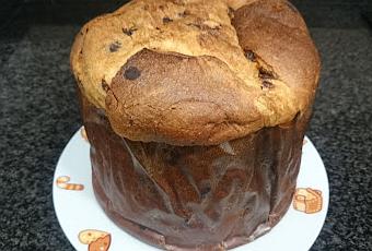 Espolvorearemos la superficie de trabajo con harina, retiraremos la masa, integra bien las pepitas de chocolate. Dividiremos la masa en 2 ó 3 partes (yo lo e hecho en dos) e introduciremos dentro del molde para panettone de 12cm de diámetro. Pintaremos con huevo batido, y haremos un corte en la superficie con forma de cruz. Dejaremos levar durante 1 hora evitando corrientes de aire.