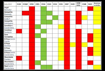 Partiendo de esta premisa, vamos a echar un vistazo al jamón cocido y similares (jamón de york, fiambre de magro, etc.). El objetivo es buscar alguna marca que trate de limitar al máximo el número de aditivos utilizados. En total he analizado el etiquetado de 14 variedades distintas de 7 marcas diferentes. He elaborado esta tabla en la que se puede apreciar muy fácilmente cuáles contiene cada producto y si se trata de aditivos inofensivos (verde), que deben ser consumidos con moderación (amarillos), o aquellos que es mejor evitar cuando sea posible (rojo).
