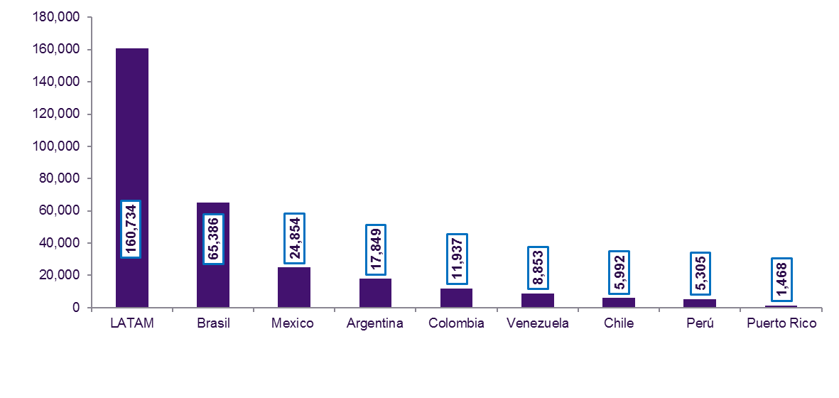 La Población de Internet en América Latina es Relativamente Proporcional a la Cantidad de Habitantes en Cada País.