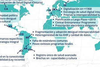 - Uruguay tiene registro único robusto; Chile impulsa interoperabilidad; Brasil opera la RNDS; Colombia/Argentina/México muestran avances parciales por dominios.