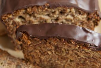 Dejar enfriar completamente y bañar con ganache suave (vegana) de chocolate. Decorar con nueces pecanas encima