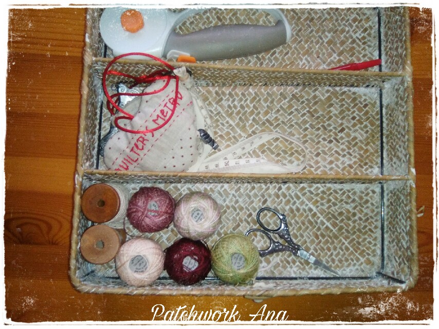 Y la cajita para poner nuestros accesorios de costura o los hilos, lo que nos apetezca..