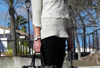 Llevo mi pantalón de cuero ( que si no lo compraba ,me daba algo ), y este jersey de punto -encaje, que me cautivó en cuánto lo ví.
