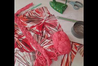 Sigo mostrándoos mis modelos veraniegos, le ha tocado el turno a un tejido de raso fino con porcentaje de elastán que compré el pasado verano en Tarragona, ya véis que cuando me voy de vacaciones también compro telas😏😏La pieza medía 1.80m. y me ha dado de sí para sacar un pantalón palazzo con top de tirantes a juego y para completar el conjunto he hecho una chaqueta de crochet muy sencilla con un algodón de color coral que le encaja muy bien.