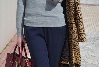 Es algo poco habitual verme de pantalones, me encuentro más cómoda con faldas o vestidos pero de vez en cuanto hago una excepción como con el pantalón que os enseño en el look de hoy. Se trata de un pantalón pijama de Zara que cogí en las rebajas, me gustan mucho este tipo de pantalón, a parte de estar de super tendencia desde hace unas cuantas temporadas, me resultan muy cómodos y estilosos y me pareció una buena compra de rebajas ya que de cara a la primavera es una prenda a la que sacaré bastante partido. Lo combiné con un jersey gris que puede parecer a simple vista un jersey básico y sencillo pero trae una sorpresa que fue lo que realmente hizo que me hiciese con él. Para los complementos escogí el granate con los stilettos granates de Zendra y el Hamilton de Michael Kors, de nuevo recurro a la combinación de azul marino, gris y granate, creo que estos tres colores encajan perfectamente. De prenda de abrigo escogí el abrigo animal print, para algunos un pelín arriesgado pero para mí la prueba de que este estampado se puede combinar fácilmente sin recurrir a la habitual, y a la que yo también recurro mucho, de negro + print animal. Qué os parece el resultado? Pantalón: ZARAJersey: ZARAZapatos: ZENDRA by EL CORTE INGLÉSCollar: ZARABolso: MICHAEL KORS Feliz fin de semana!!