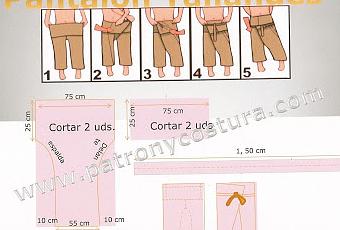 Pantalón de talla única UNISEX muy de moda por su comodidad y su estilo, podemos utilizar sedas, mezclilla ligera etc... aunque su original diseño es en algodón ó rayón.En función de lo alto que se sea necesitamos más o menos tela, con 2 m en doble de ancho es suficiente.