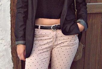 Hoy os enseño el look al que recurrí hace algunos días. Como es habitual aquí en Asturias, al atardecer suele refrescar bastante, por ello quise crear un look con el que no pasara frío. Quería algo de manga larga, por ello utilicé este crop top básico, lo combiné con el pantalón de topos de Pull del año pasado (aquel que tanto perseguí y al final encontré); le añadí mi collar favorito y para completarlo el blazer masculino.
