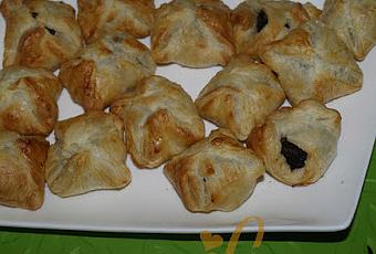 Con un pincel, pintamos los pañuelos con clara de huevo y los metemos en el horno, al que previamente hemos precalentado a 180º. Vigilamos y cuando adquieran un color doradito los sacamos del horno y los servimos inmediatamente, aunque tengo que deciros que en frío también están muy ricos.