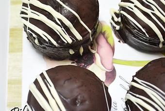 - Dejamos que enfríen por completo sobre una rejilla y, a continuación, los cortamos por la mitad con un cuchillo de sierra. Los rellenamos con dulce de leche, y los cubrimos con le chocolate fundido. Dejamos que la cobertura se endurezca completamente antes de servir.
