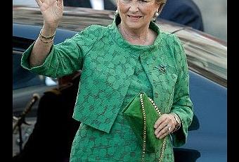 Sin duda hemos visto a la Reina Paola más favorecida en otras ocasiones. No nos gusta demasiado el estampado para la ocasión tan solemne y tampoco que haya combinado su vestido con zapatos y bolso del mismo color. Demasiado verde.