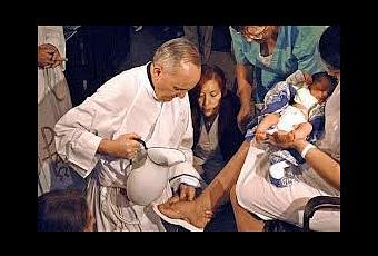 Me gusta su deseo ir al punto, al grano, al llano, aunque tenga que prescindir de ropajes rimbombantes, comodidades, rodeos. Así lo confirman las fotos viajando en metro en Buenos Aires, tomando mate, besando los pies de un niño enfermo de SIDA, vistiendo sotana remendada, zapatos viejos…