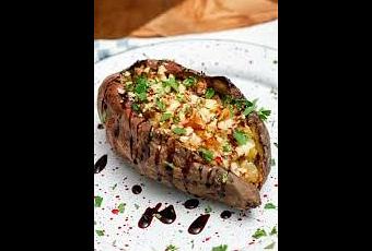 - Cocinar las batatas al horno enteras realizando unos tajitos y agregando aceite, y hierbas.