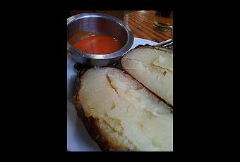 Disponemos las patatas en una fuente y al lado en una salsera el mojo, listo para tomar.