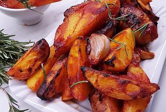 Hay miles de recetas para cocinar las papas o patatas, tantas como gustos y paladares hay en el mundo.Las papas asadas con tomate y romero es una receta que lleva pocos ingredientes y no da mucho trabajo para cocinarlas. Simplemente tenemos que lavarlas, cortarlas en forma de gajos y mezclar con los ingredientes.