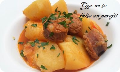 Dejar cocer unos 20 minutos, hasta que el caldo quede concentrado y las patatas tiernas.Sirve con el perejil picado por encima.