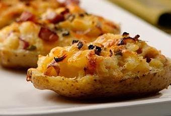 Rellenar las papas ahuecadas con esta mezcla.