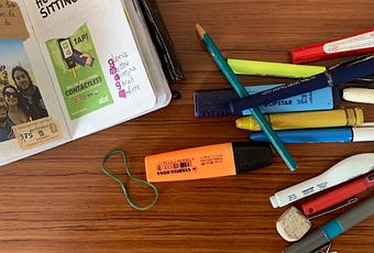 Lo tercero es tener buenos marcadores, lápices, rotuladores, acuarelas… Hazle marcos a tus fotos, pinta un paisaje, escribe. Da rienda suelta a tu alma creativa.