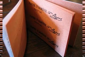 Así nace Papier d'arménie. Unos pequeños libritos con tiras de papel impregnadas en una solución de alcohol y perfume.