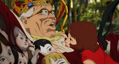 Y el malogrado Satoshi Kon (se marchó a otra vida mejor demasiado pronto para desgracia del cine) se introduce en ese mundo de sueños, en el umbral de la conciencia, de manera muy personal y propia, sin fijarse en otros cineastas que lo hicieron antes que él, pero fiel a las teorías que hay sobre el mundo onírico, como podemos apreciar en detalles como el curioso orden entre transiciones, la quebrantabilidad de la lógica espacial y temporal, la forma de hablar de las personas en determinados momentos, la animación de objetos inanimdos, la mutación corporea tanto en rostros como en cuerpo, el cambio brusco de escenarios... o simplemente, en ese vertiginoso y subygante comienzo que te atrapa con fuerza y no te suelta hasta los créditos finales.